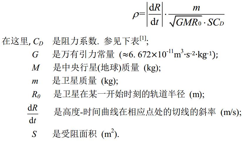 這種模式是否具有實用意義主要取決于離子在工作環境中是否充足, 即是說, 我們首先必須先測出高層大氣的近似的密度. 又因為它太小, 無法直接測量, 我就想出一種間接的方法: 通過測量不受控制的近地軌道衛星的軌道高度的自然衰減. 由于密度可由作用于衛星上的大氣阻力大小求出, 這個阻力間接地體現在衛星高度衰減上, 因此通過計算我們得出密度ρ (kg/m3 ):