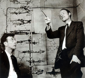 1951年~1953年在英國期間,沃森和克里克合作,應(yīng)用物理學(xué)、化學(xué)的新技術(shù)和生物學(xué)研究的新成果,用綜合的觀點(diǎn),把自己的創(chuàng)造性工作同前人的研究成就結(jié)合起來,提出了DNA的雙螺旋結(jié)構(gòu)學(xué)說,這個(gè)學(xué)說不但闡明了DNA的基本結(jié)構(gòu),并且為一個(gè)DNA分子如何復(fù)制成兩個(gè)結(jié)構(gòu)相同DNA分子以及DNA怎樣傳遞生物體的遺傳信息提供了合理的說明,成功地解決了DNA的三維結(jié)構(gòu)問題。
