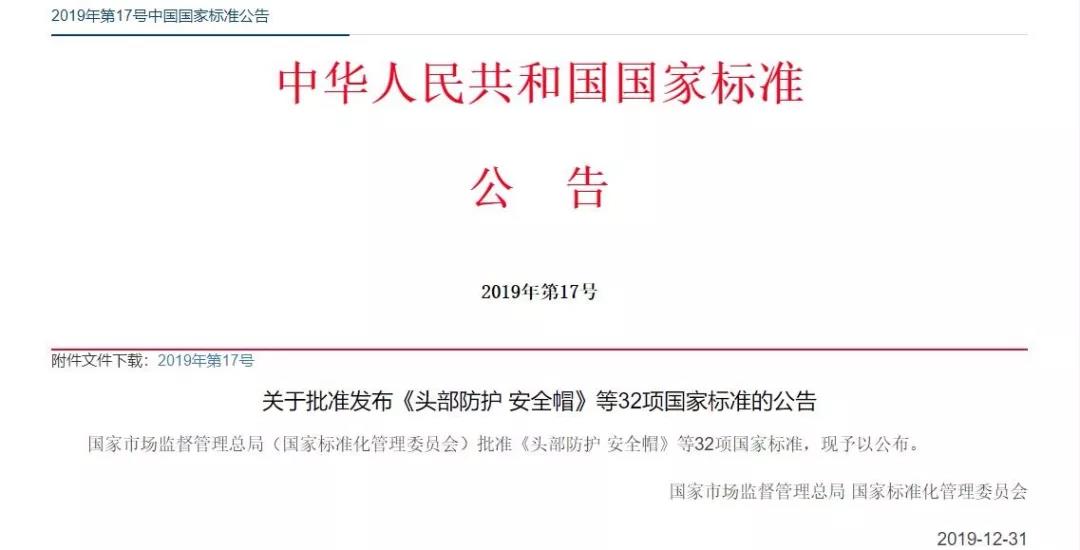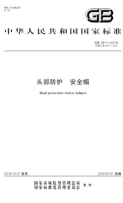 國家市場監管總局、國家標準委批準發布新版安全帽標準GB2811-2019《頭部防護 安全帽》,將于2020年7月1日起正式生效。