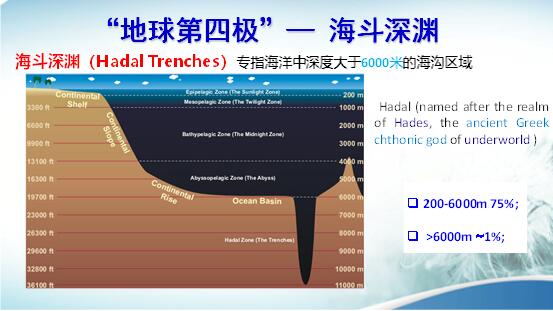 先介紹一下有關常識。在海洋水深大于6000米時,叫海斗深淵,又叫地球的第四極。地球的四個極就是南極、北極、珠穆朗瑪峰和海斗深淵。