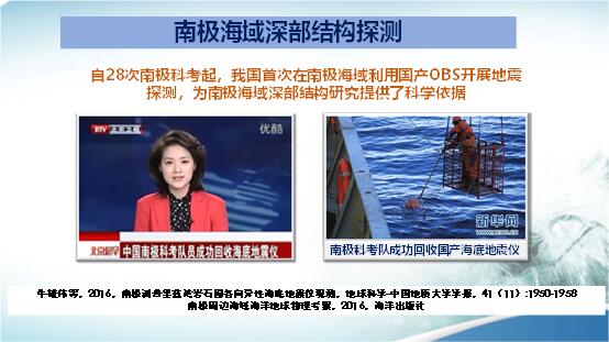 在南極地區,我國有二處陸上地震臺站。在第28次南極科考時投放了海底地震儀,過了一年,在第29次南極科考船去那片海域回收時,因那片海域結冰,沒法回收。根據設計,海底地震儀最大留海時間為一年,大家都擔心失掉這兩臺儀器了。可喜的是,又過了一年那片海域已經沒有冰了,在回收時,海底地震儀竟然浮到海面,這是在海底記錄時間最長的一次試驗。也為南極海域深部結構研究提供了科學依據。