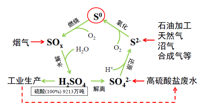 化學原料與制品、石化、醫藥、農藥、染料化工、焦化、造紙等生產過程,硫及其硫的不同形式產物被廣泛應用,目前我國每年消耗硫酸超過1億噸,硫酸鹽廢水排放體量巨大,工業生產過程每年產生大量的SO2,這些物質最終以不同的形式硫進入生產廢水和固廢中。其中含硫廢水是最主要的硫污染源,這類工業廢水有機污染物濃度高、產生量大、污染物組分復雜,廢水中含有多種難降解化學物質和毒性物質,廢水難生化降解。