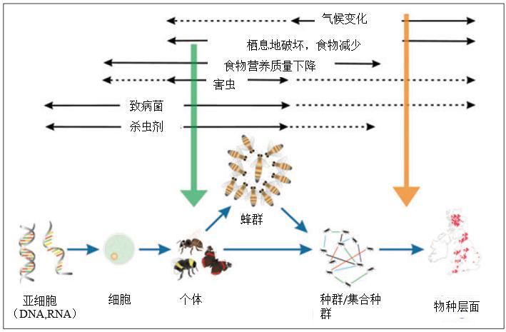 圖3 各種環境因素對傳粉昆蟲的各個層面的影響
