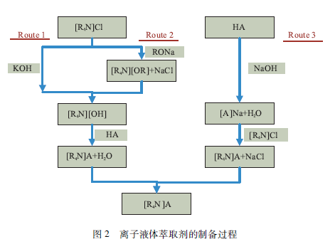 離子液體的發展始于20世紀90年代末,是由有機陽離子和陰離子組成的離子對化合物,具有與分子溶劑許多不同的特性。離子液體的出現為尋求新結構的化合物提供了一個嶄新的思路。例如,利多卡因多庫醋(Lidocainium Docusate)由有機錢類陽離子和有機磺酸陰離子組成,在活性藥物組分(API)中有重要應用,起到協同效應。這給我們探索新型稀土分離萃取劑提供了一個嶄新的思路。離子液體萃取劑是季錢陽離子和有機酸陰離子組成的有機鹽,是有確定結構的單一組分化合物,與傳統意義上的兩種以上成分組成的協萃混合體系還有本質的區別。該有機鹽的穩定性主要依靠正負電荷庫倫力和氫鍵等分組間分子間作用力,在離子自組裝(ISA)材料中,該結構具有重要應用,其作用力強度可達共價鍵能的70%。