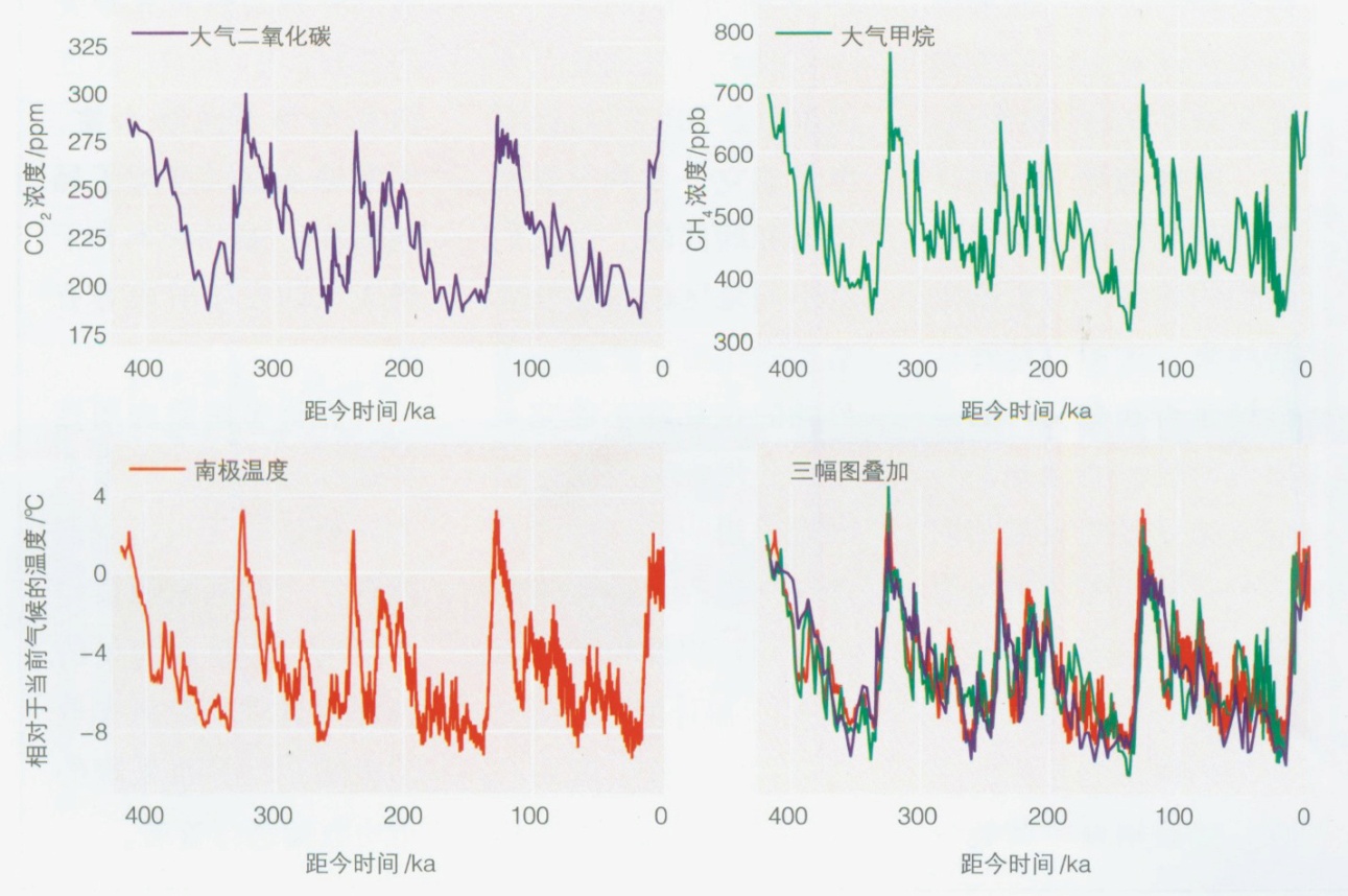圖3 根據冰芯記錄得出的氣候變化數據(時間尺度為千年)
